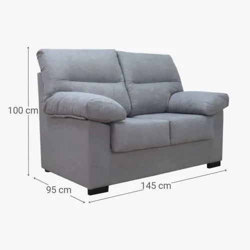 Este sofá está fabricado con estructura de madera de pino y tablero MDF, materiales resistentes que garantizan estabilidad y durabilidad. Además, cuenta con suspensión de cinchas elásticas, que proporcionan una sentada firme y adaptable para un mayor confort en el uso diario.