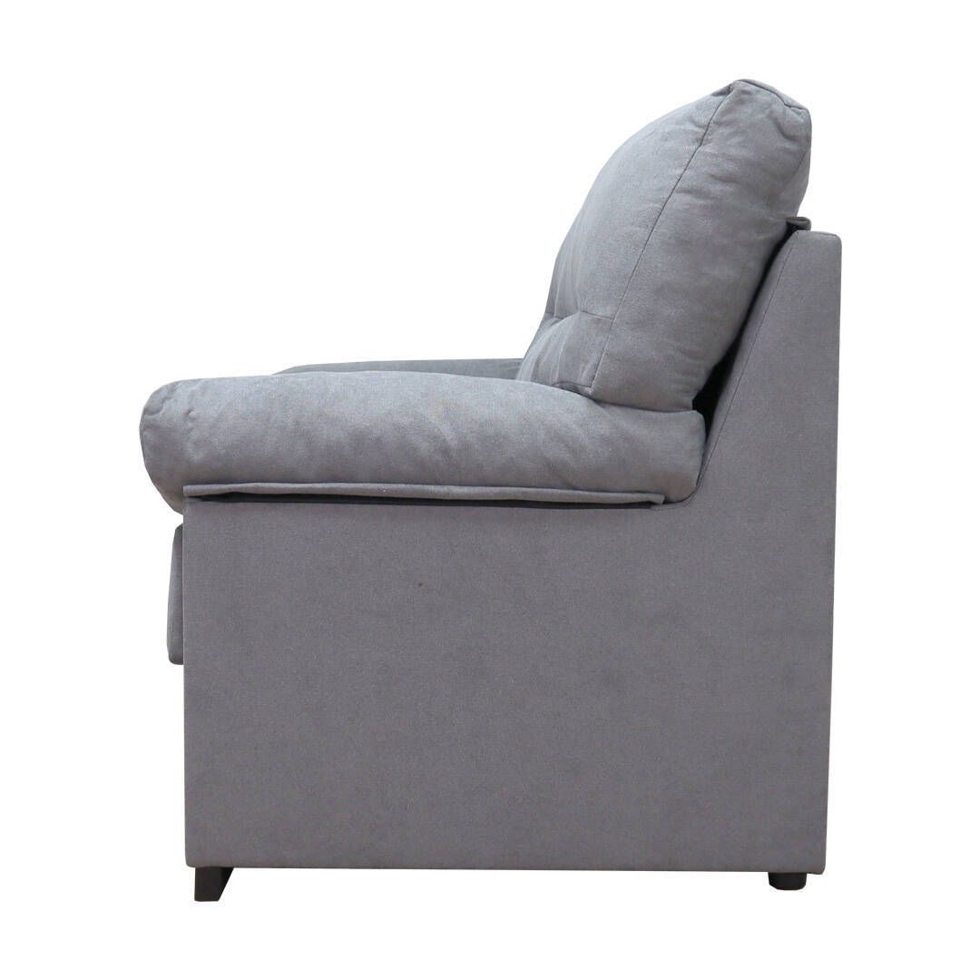 El sofá está tapizado en poliéster de tacto suave, un material resistente y fácil de mantener que aporta un acabado elegante y agradable al tacto. Si necesitas más espacio para sentarte, puedes combinarlo con el sofá de 3 plazas del mismo modelo, creando un conjunto perfecto para tu salón.