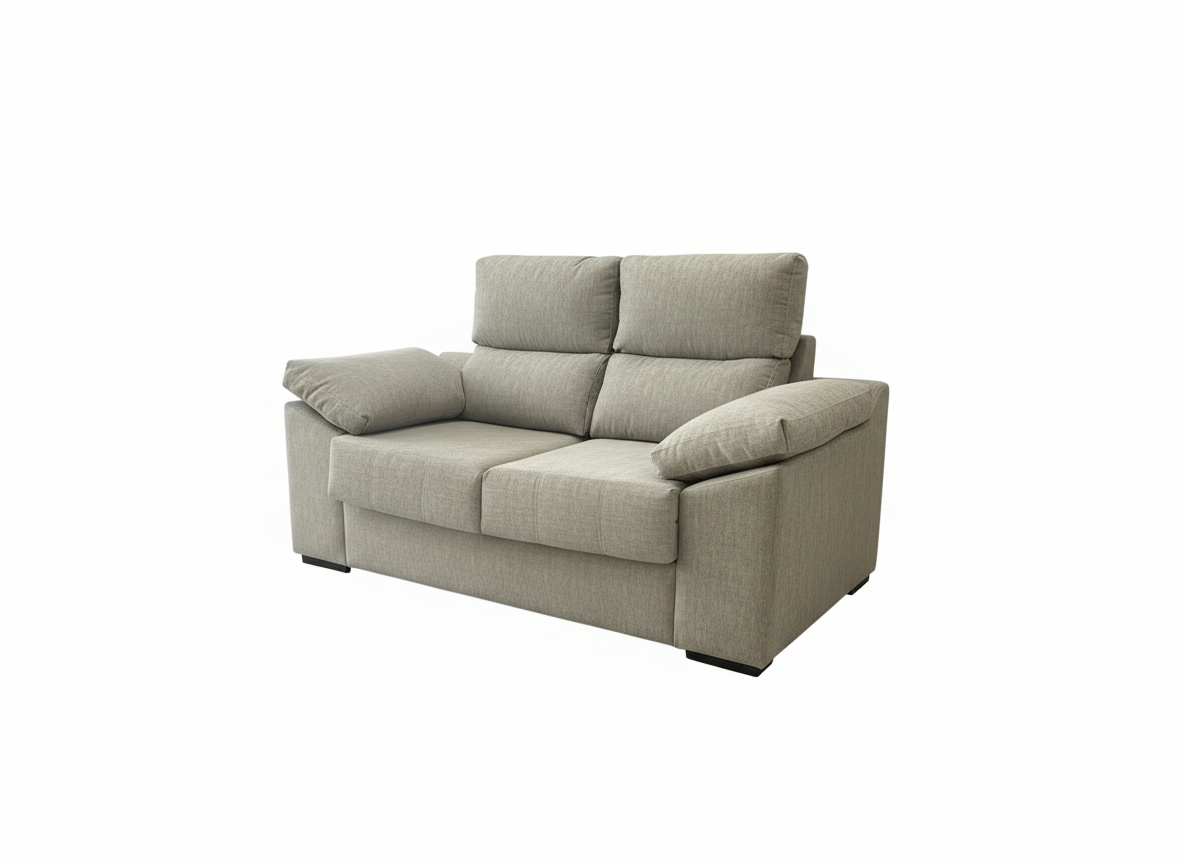 Este sofá de 2 plazas ha sido fabricado en España. La estructura está realizada con madera de pino y aglomerado, sus asientos son de espuma de poliuretano con densidad de 28 Kg/m3 y el relleno de los respaldos está hecho de floca y copos de espuma picada. Todos los materiales utilizados en la fabricación del sofá KANSAS son de primera calidad.
