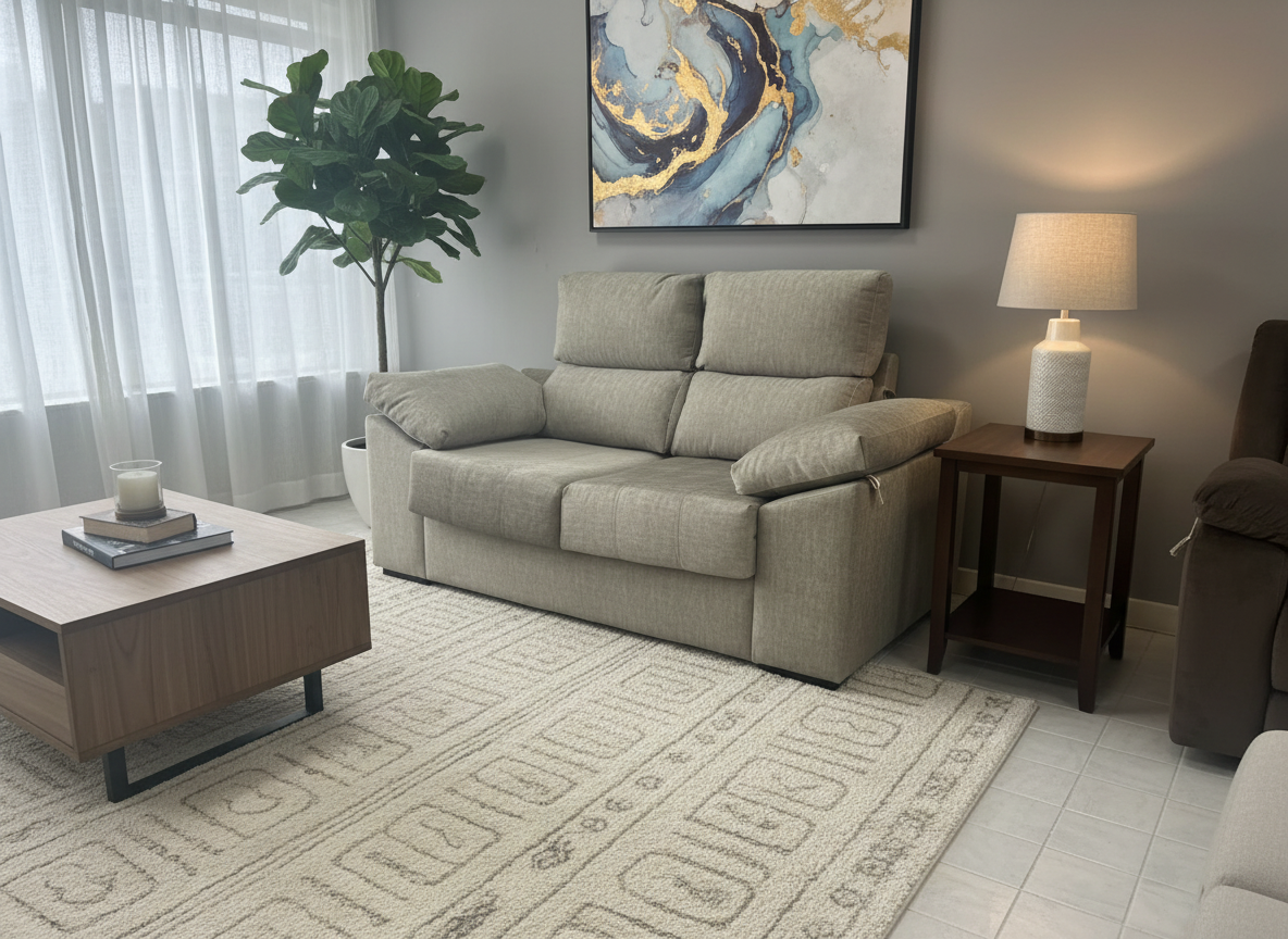 Disfruta de la comodidad en tu hogar con este moderno sofá de 2 plazas tapizado en elegante tela de color Gris.