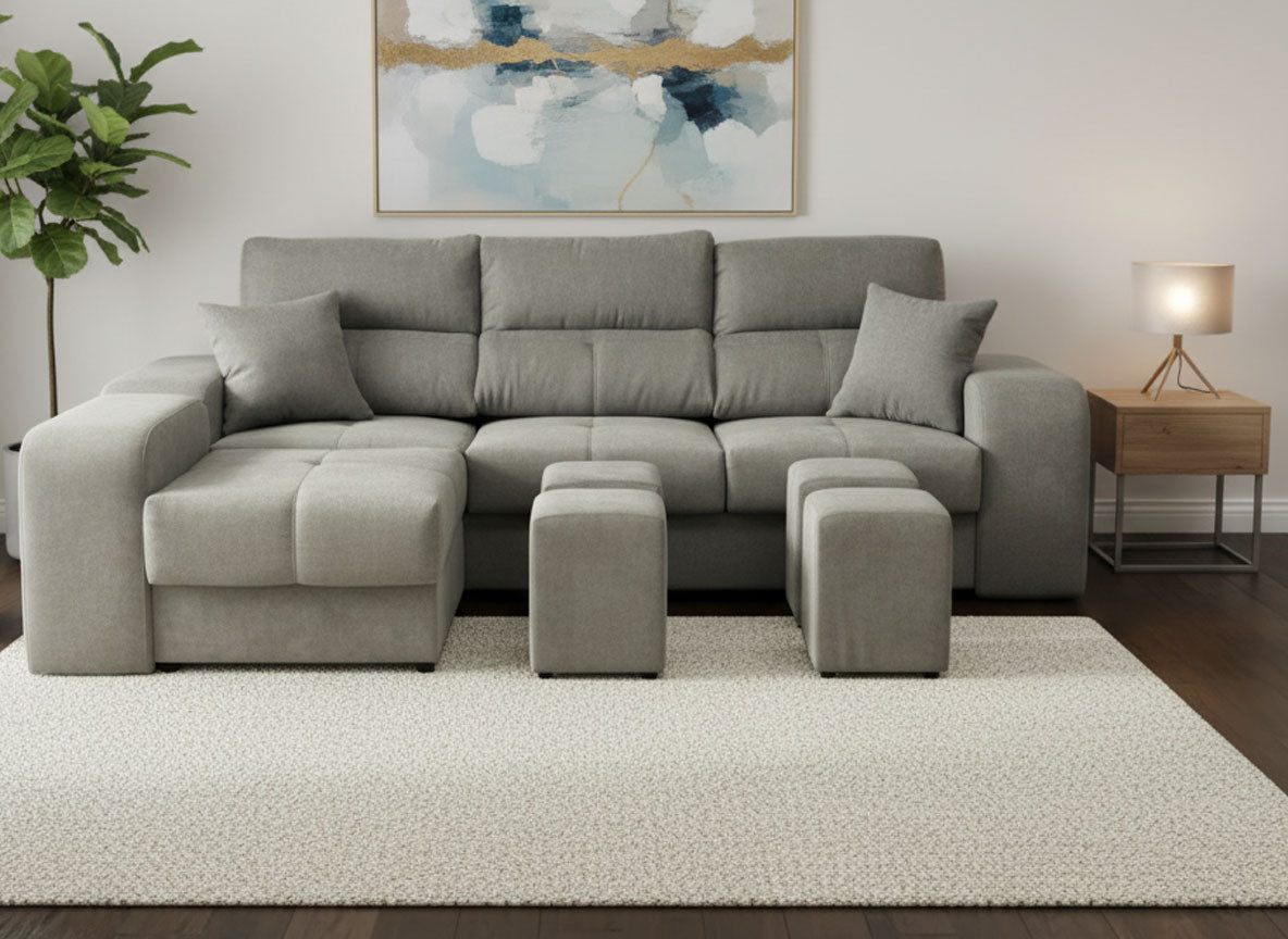 Gracias a su tono neutro y textura sofisticada, este sofá se adapta fácilmente a distintos estilos de decoración, desde contemporáneo hasta rústico o industrial.